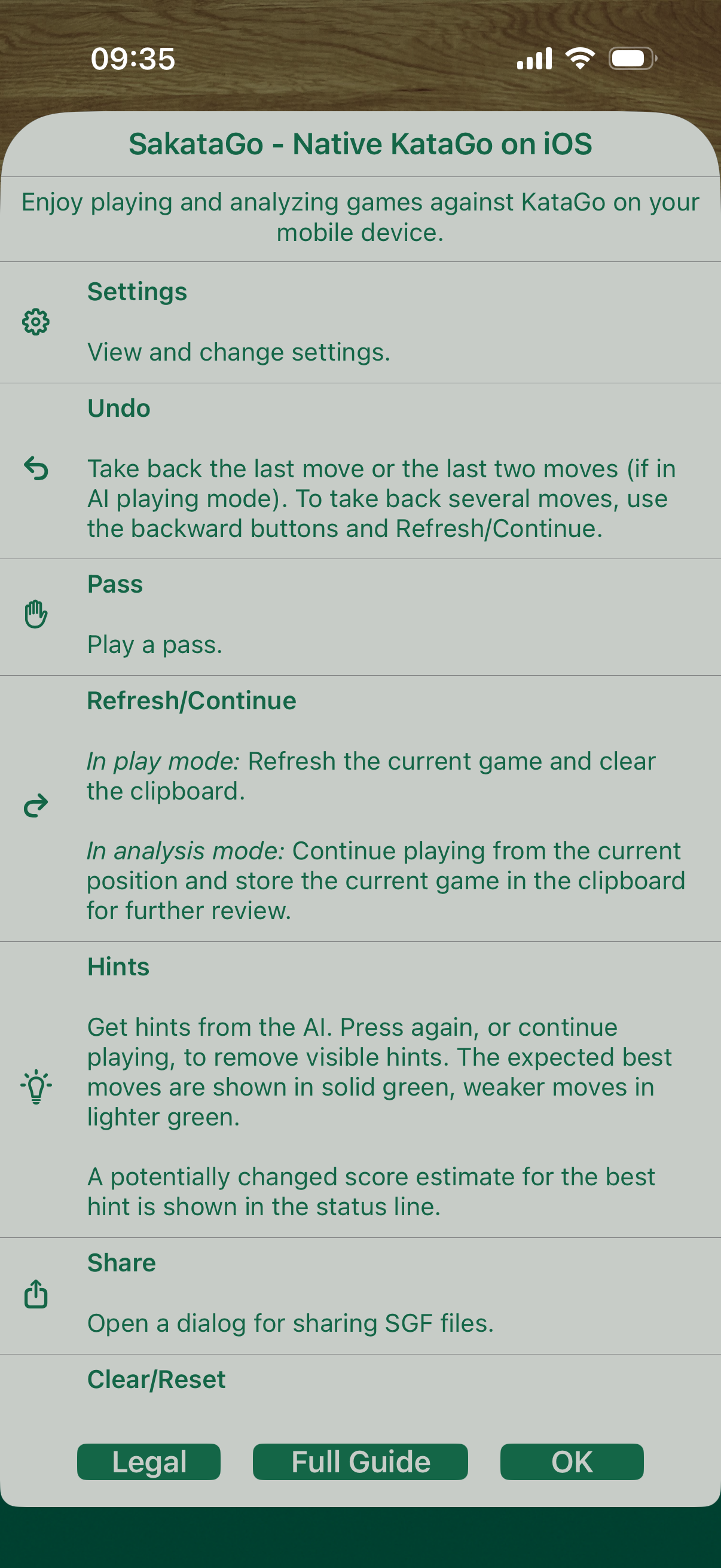 | • | Game analysis and hints: review moves with color codes for expected point loss, estimate territory, and check win rates |